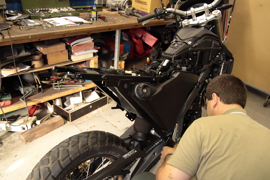 Die etwa 3 stündige Montage des Rahmenhecks und der Träger erwies sich als problematisch. Durchgeführt wurde die Montage von Zweiradmeister Franz List, dem Betreiber einer kleinen aber feinen Werkstatt alter Schule für klassische Motorräder wie 2-Ventil Boxer oder Einzylinder Motorräder (http://fahrzeugtechnik-list.de / Hünxe). Wie die obigen Fotos es zeigen, musste das gesamte System mit aufgebohrten Muttern "gestreckt" werden um überhaupt am Fahrzeug anzuliegen. Auch die Verstärkung am Aufnahmezapfen für den Endtopf musste abgefeilt werden um ein Anschrauben überhaupt zu ermöglichen. Da mehrere Zentimeter Spiel außerhalb einer zu erwartenden Toleranz liegen, habe ich nach der Montage eine E-Mail an Touratech gesandt. Der Service meldete mir dass die E-Mail an die richtige Stelle weitergeleitet wird. Eine Antwort habe ich aber nicht mehr erhalten ... Weiterhin hatte ich mir Handprotektoren geordert. Ich habe es bei den schmalen Versionen als Wind- und Steinschutz belassen, auf die zusätzlich zu bestellenden Erweiterungen habe ich verzichtet. Das System halte ich persönlich eher für einen Marketing-Schachzug, wären die schmalen Teile 2cm höher, benötigte niemand den Spoiler-Schnickschnack mit zusätzlichen Schrauben. Bei dicken Handschuhen liegen die Schützer etwas zu eng an, ich würde daher vom Kauf abraten. Bei den pseudopädagogischen Montageanleitungen für alle Produkte von Touratech fehlen leider Explosionszeichnungen, man rätselt auch als gelernter Schlosser ein wenig über die Anordnung von Unterlegscheiben, Schrauben usw. Die Montageanleitungen wirken ein wenig so, als hätte eine Büropraktikantin mit der Aldi-Digi-Cam in der Mittagpause den Auftrag zur Erstellung erhalten: "Mensch Petra, uns fehlt da noch ne Montageanleitung". Weiterhin habe ich mir zur Verbesserung der Seitenständersituation noch einen Pin zum Ausklappen des Ständers und eine Fußplattenerweiterung gekauft. Die Fußplattenerweiterung lässt das Motorrad noch schlechter abstellen, da der Ständer der G650X etwas lang ausgefallen ist, daher kann ich hier auch nur abraten. Ein kürzerer Seitenständer würde das Abstellen erleichtern, aber beim Tanken in die Seitenöffnung stände das Fahrzeug zu schief.