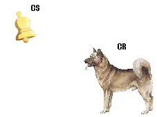 In diesem Bild sehen Sie einen Hund, der auf das Klingelzeichen (CS) konditioniert worden ist, Speichel als konditionierte Reaktion abzusondern. |